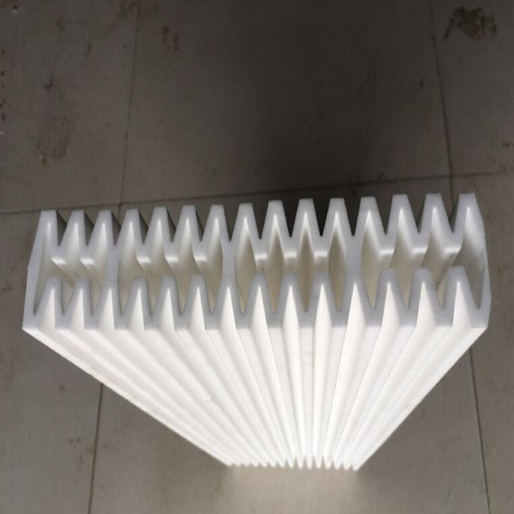 塑燒板的所占空間僅是布袋除塵器的1/3-1/6,并且可以疊加設計縮小占地面積。過濾面為波浪形設計,單塊板過濾面積是相同體積濾袋的2-3倍。